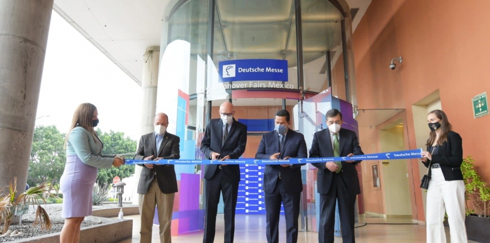 León, Guanajuato, 22 de julio de 2021.- Durante un acto protocolario de inauguración, el Gobernador de Guanajuato, Diego Sinhue Rodríguez Vallejo; el Jefe de la Oficina de la Presidencia de CONCAMIN, Manuel Pérez Cárdenas; el Director General de Economía del Municipio de León, José Manuel Casanueva de Diego; y el Director General de Hannover Fairs México, Bernd Rohde, tuvieron la ceremonia conmemorativa de la inauguración de las nuevas oficinas centrales de Hannover Fairs México en León, Guanajuato.